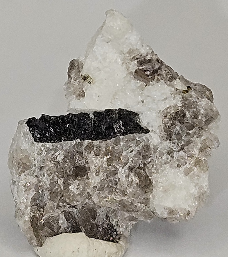 [Lustrous Black Fractured Microcrystalline Prisms in Pegmatite]