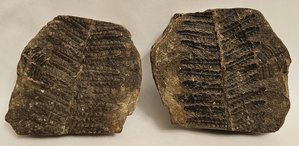 [Matching Pair of Carbonized Fronds in Siderite Nodule]
