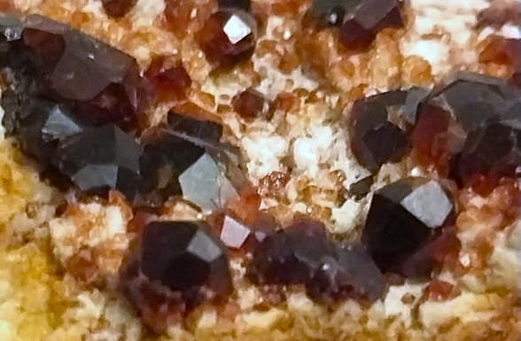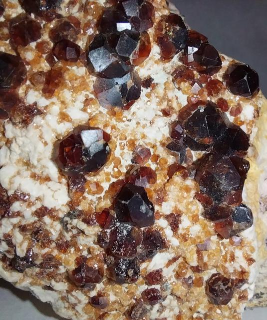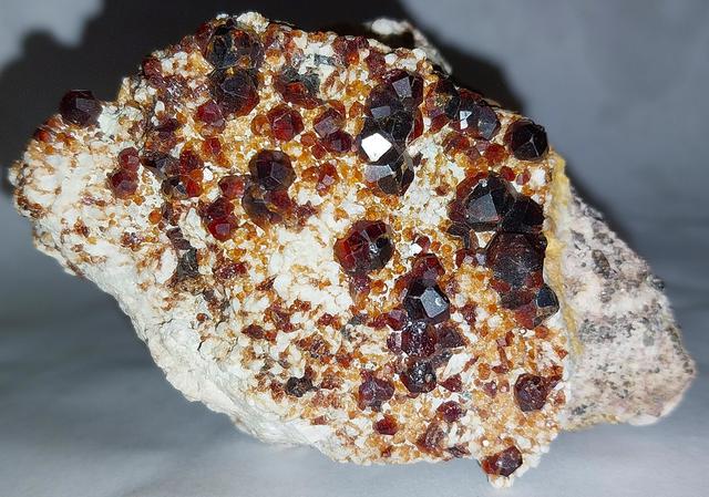 [Sharp Dark Red Euhedral Crystals in Albite Pegmatite]