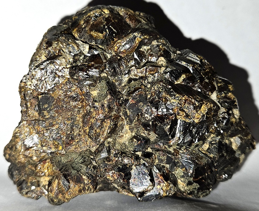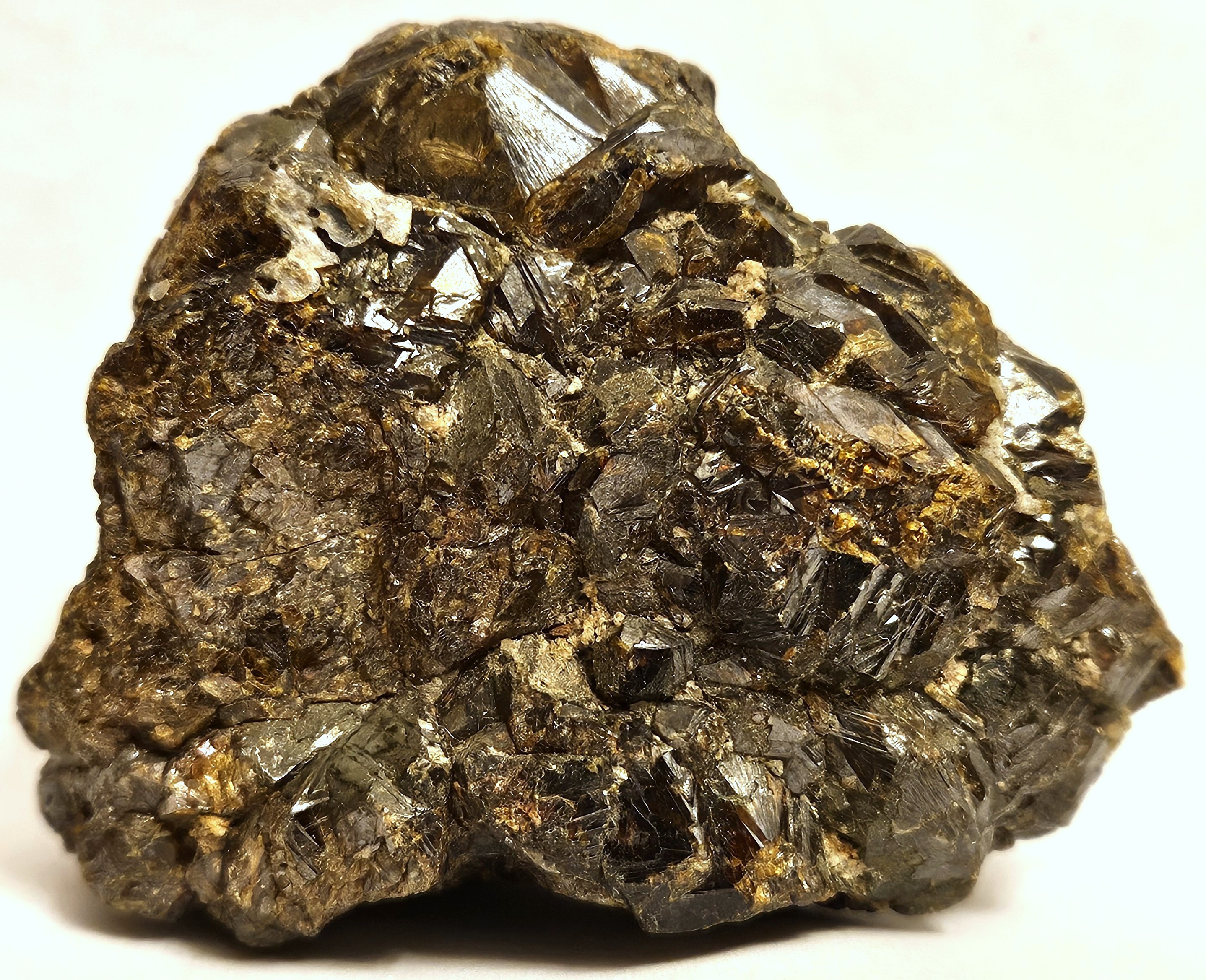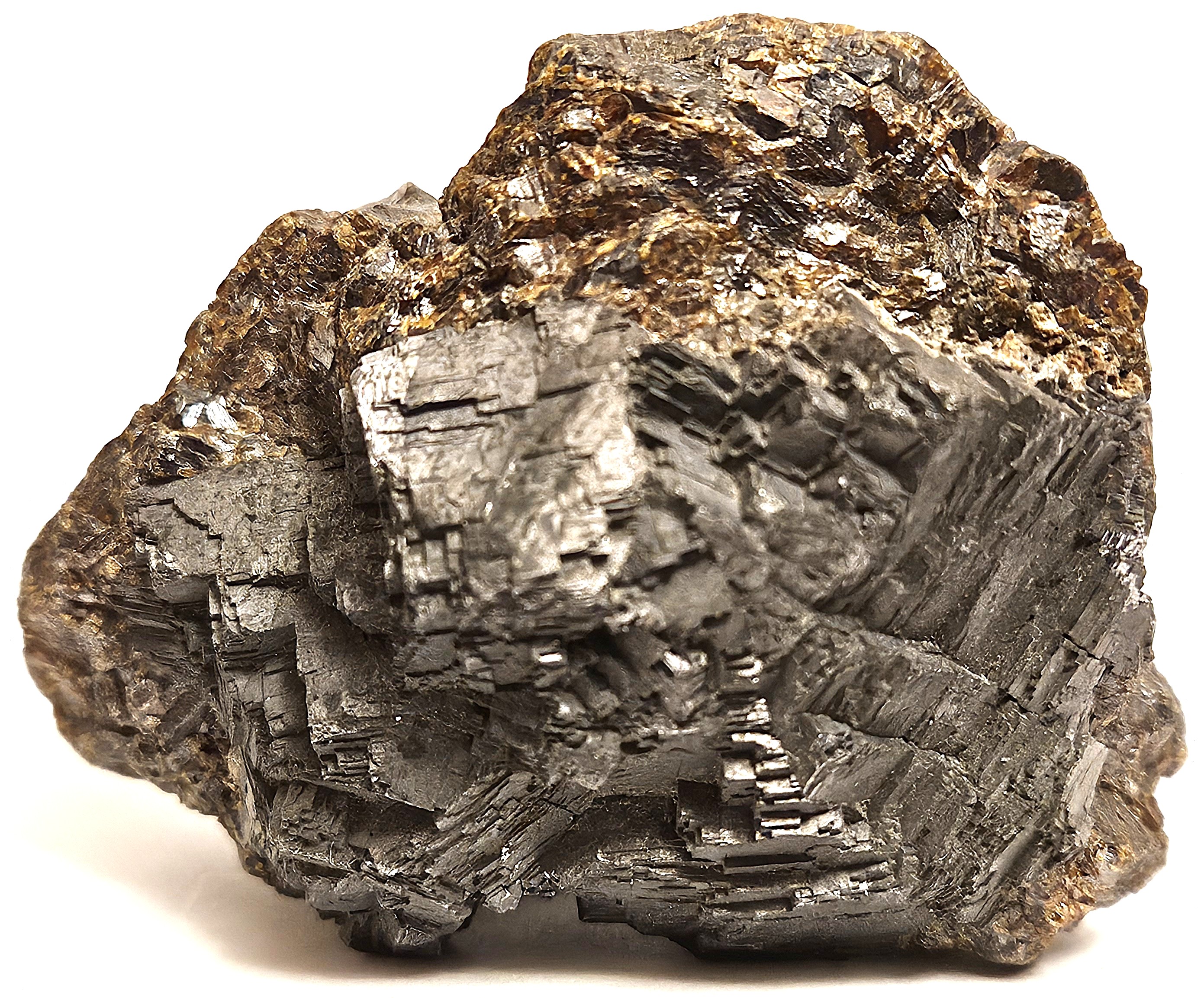 [Lustrous Glassy Root Beer-Brown Partially Transparent Terminated Intergrown Crystals Rimming Cleaved Silver-Grey Galena]