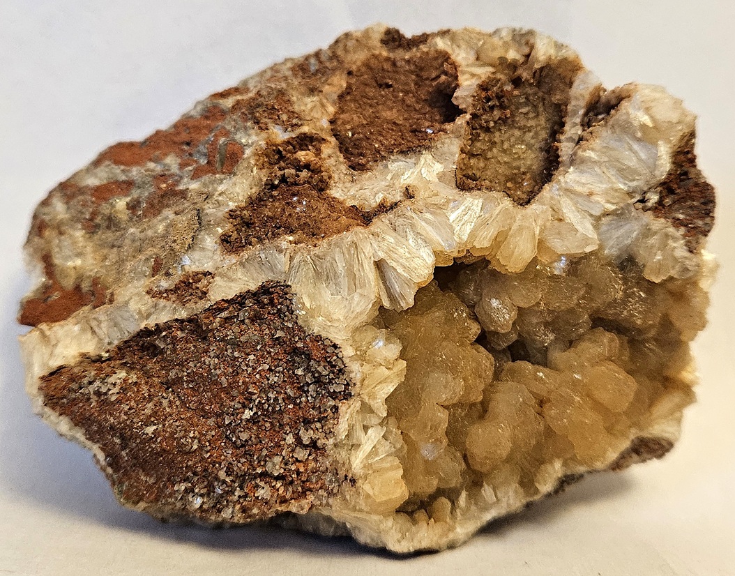 [Intergrown Orange Crystals with Calcite on Basalt]