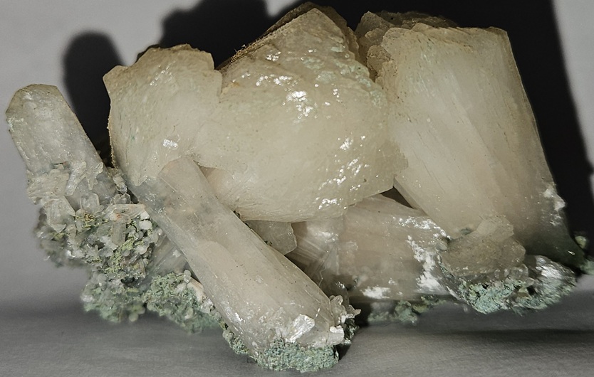 [Intergrown Glassy Peach Colored Terminated Crystal Sheafs with Apophyllite]