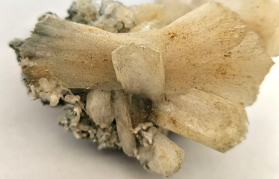 [Intergrown Glassy Peach Colored Terminated Crystal Sheafs with Drusy Quartz]