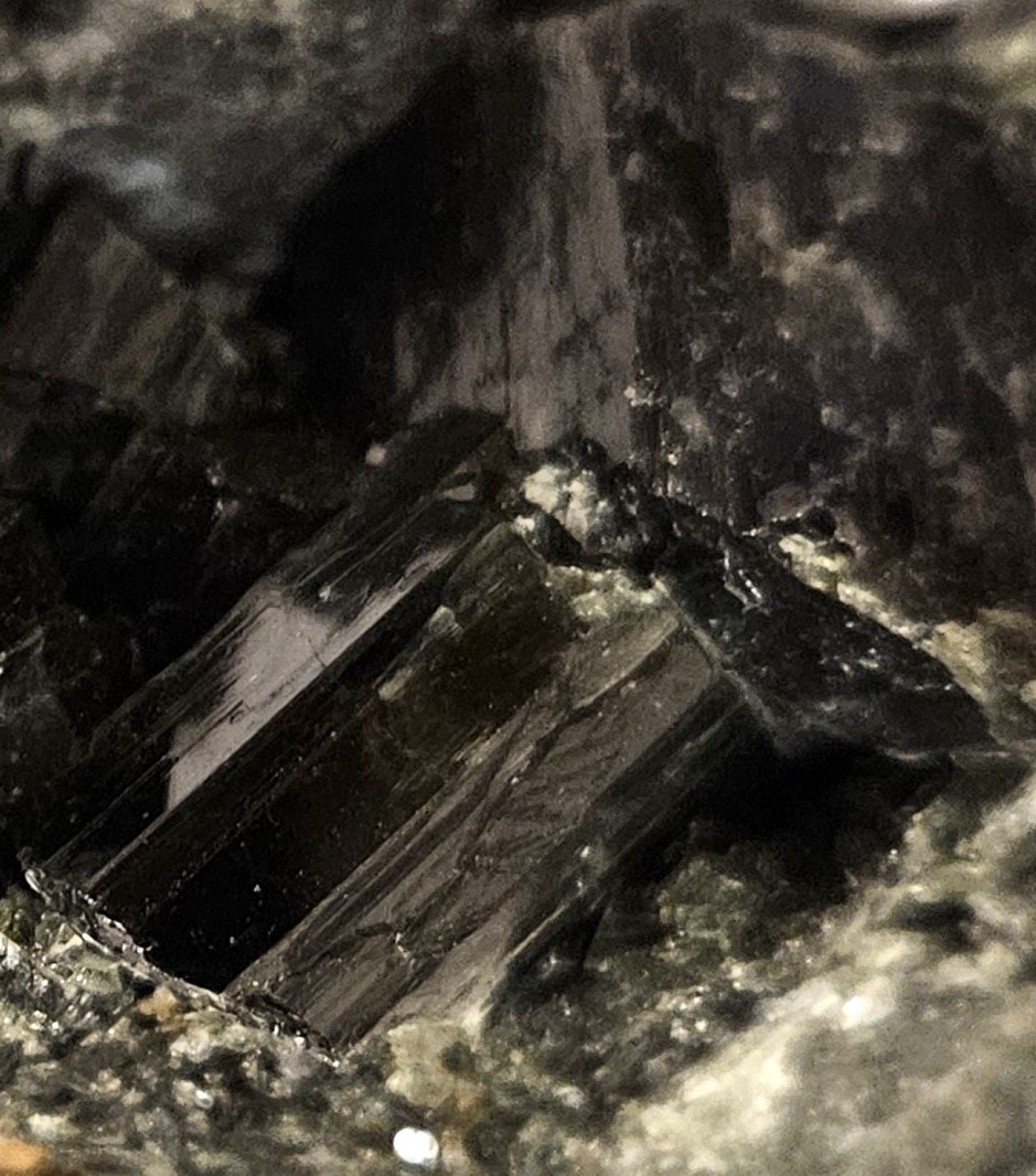 [Lustrous Dark Green Crystals on Massive]