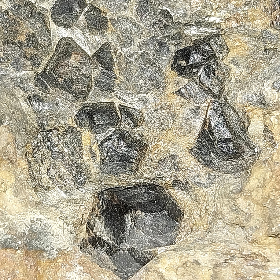 [Sharp Dull Black Crystals on Gneiss]