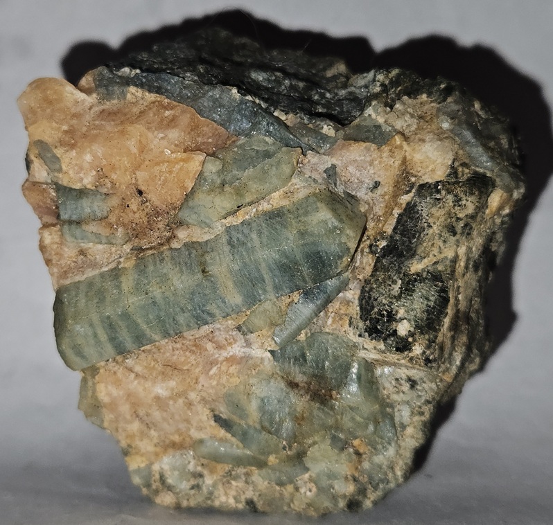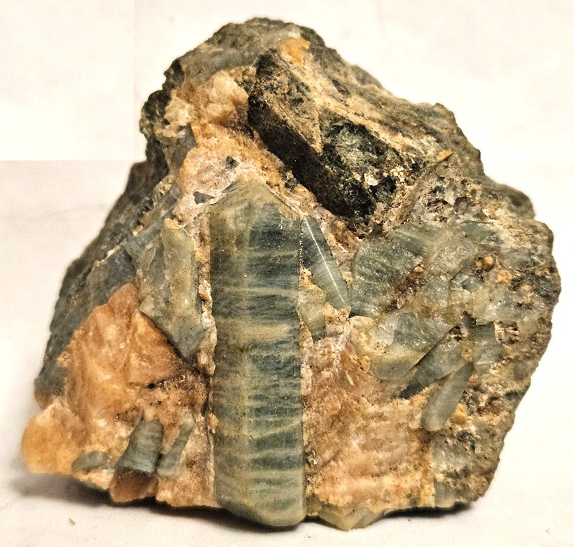 [Green Prismatic Hexagonal Crystals in Matrix]