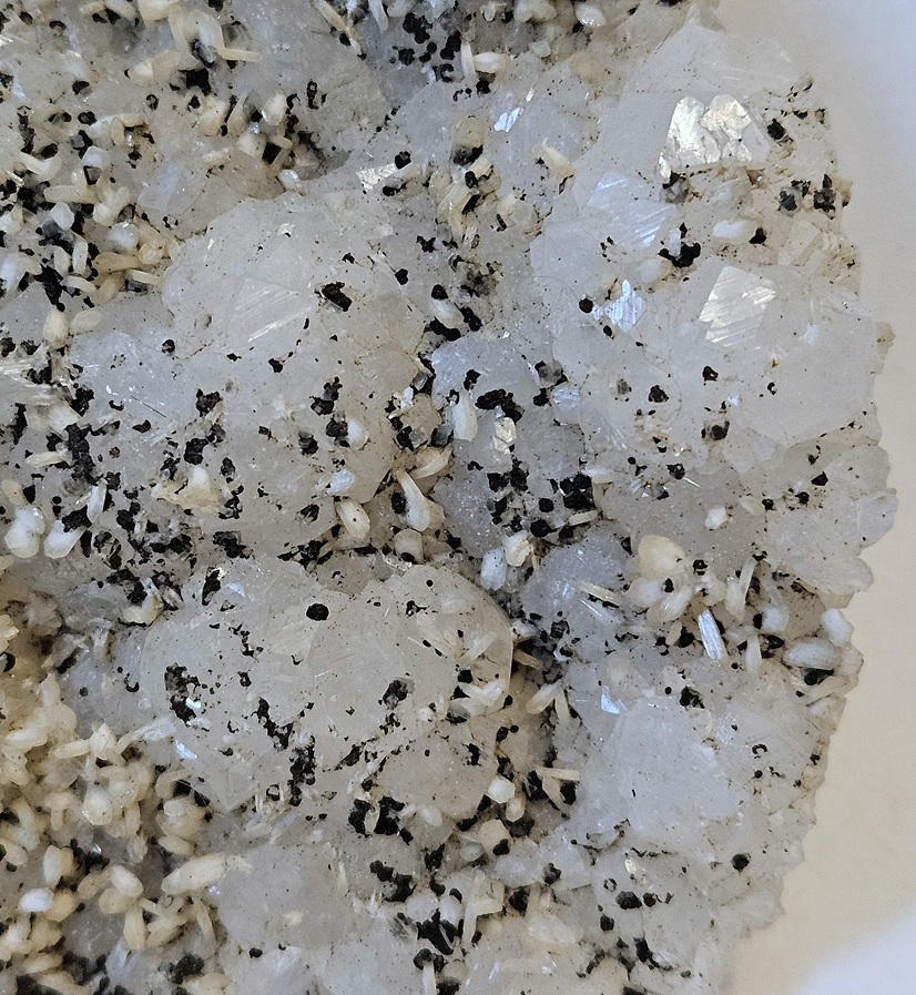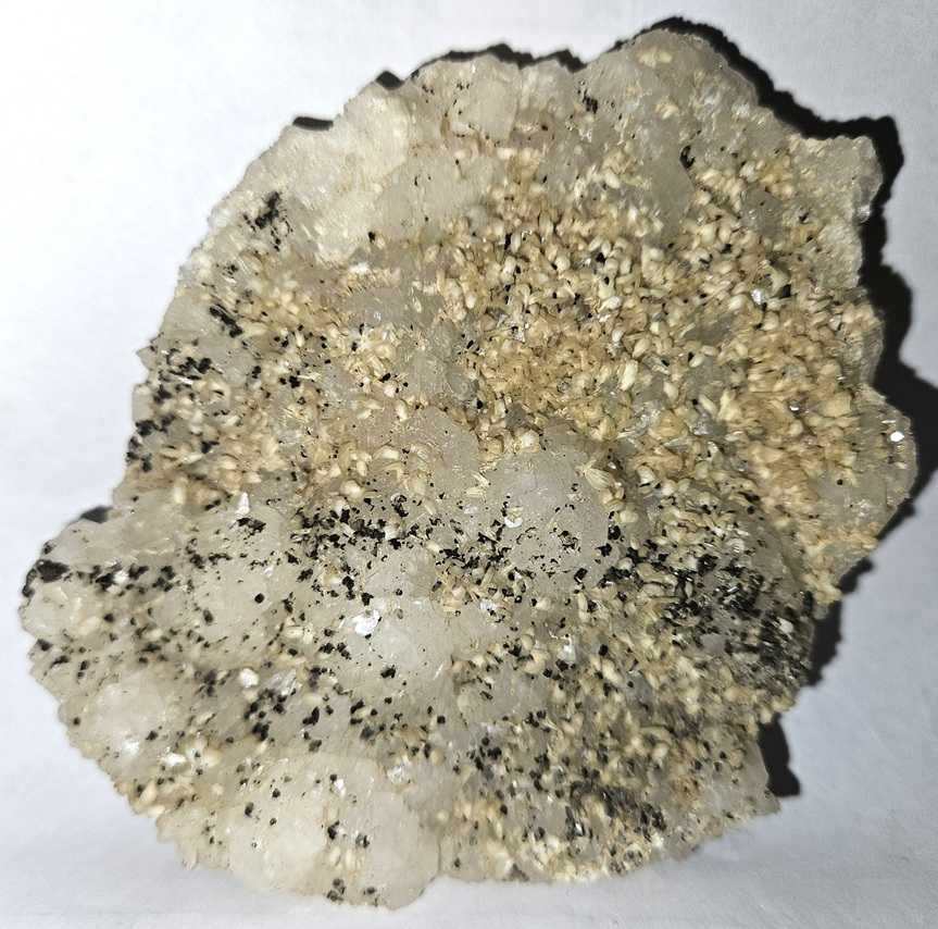 [Glassy White Intergrown Crystal Plate with Stilbite and Magnetite]