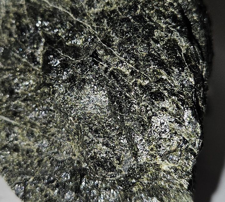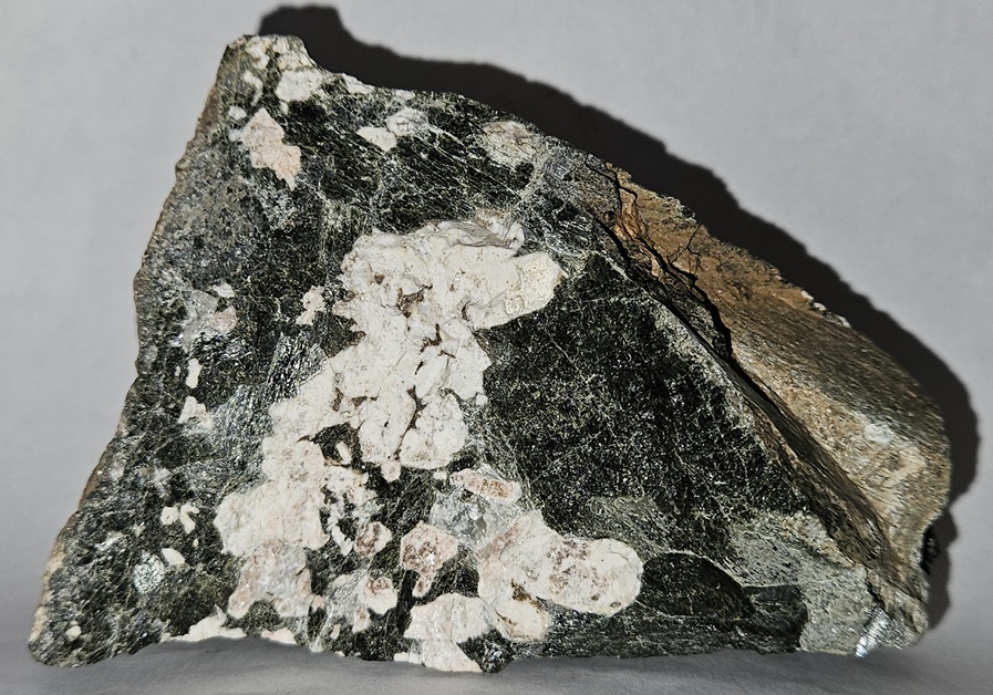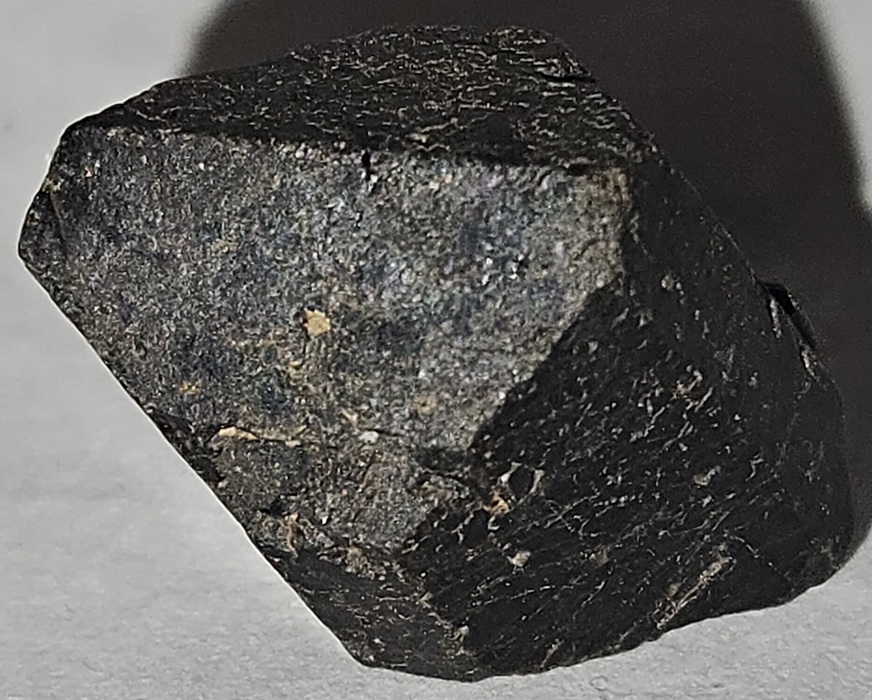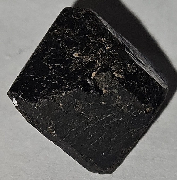 [Glassy Black Euhedral Crystals in Dark Reddish-Grey Tephrite]