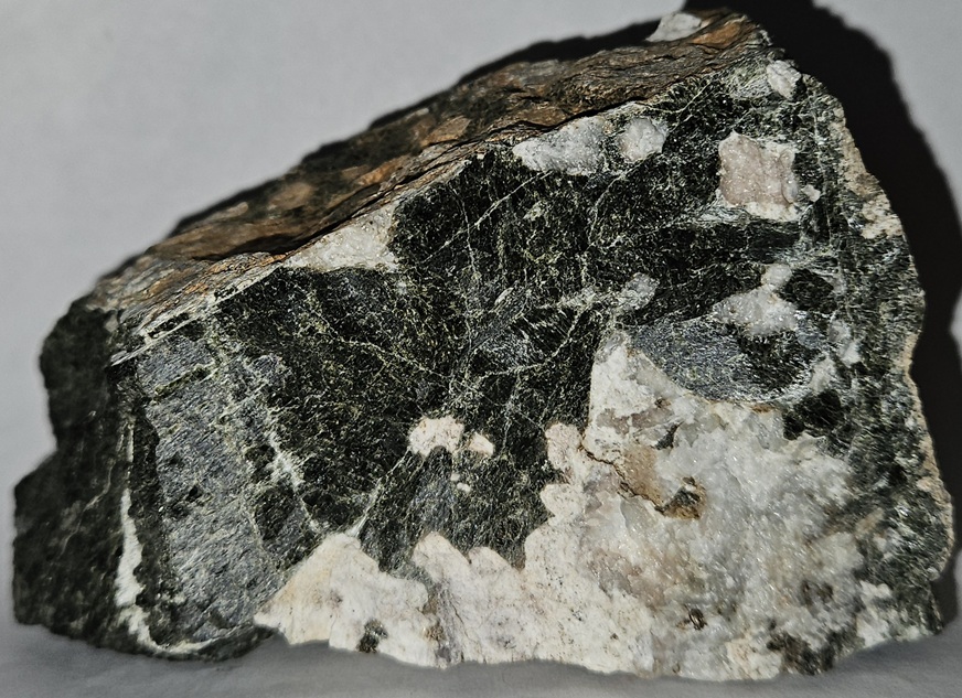 [Dark Green Blocky Crystals with Light Tan Euhedral Scapolite]