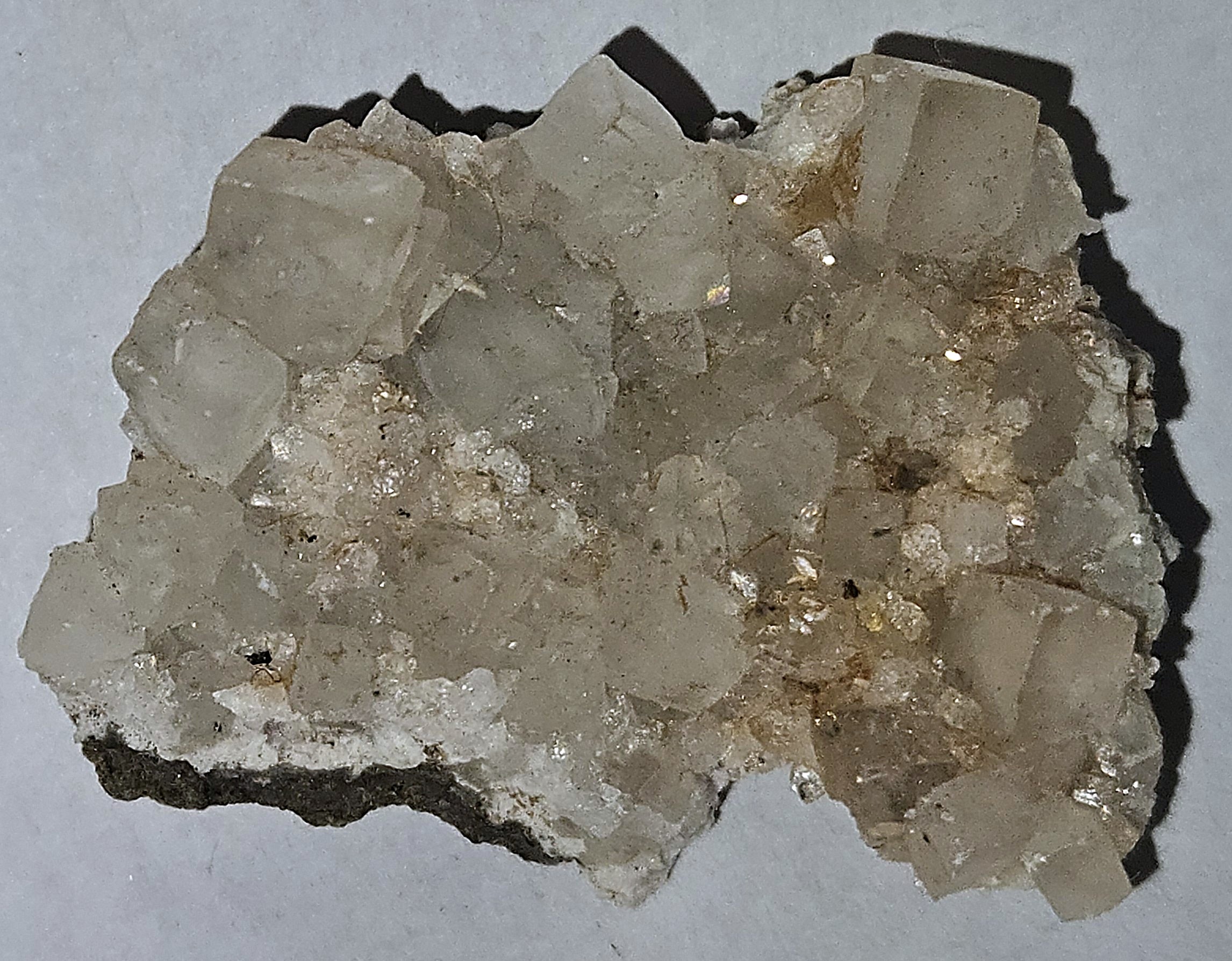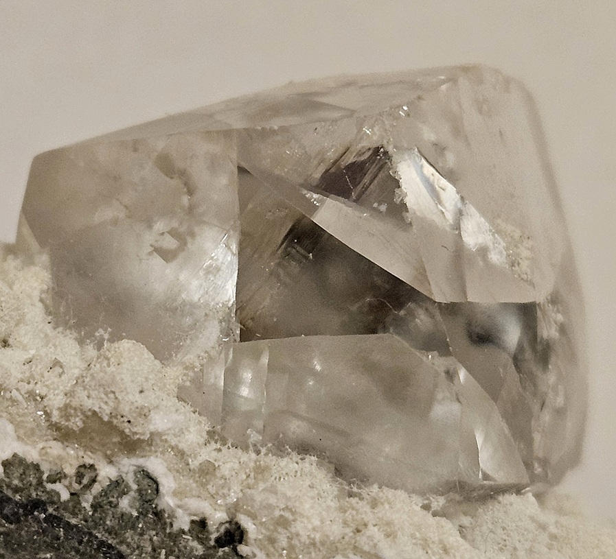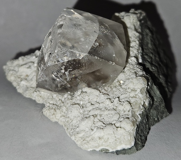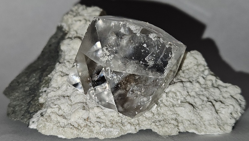 [Transparent Clear Modified Pseudocubic Euhedral Crystal on Matrix]