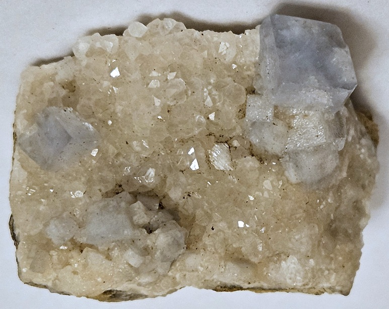[Pale Blue Translucent Terminated Crystals with Calcite on Dolostone]