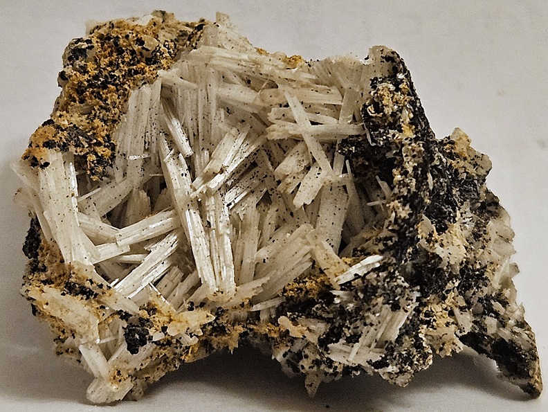 [Intergrown Pale Yellow Jackstraw Crystals on Matrix]
