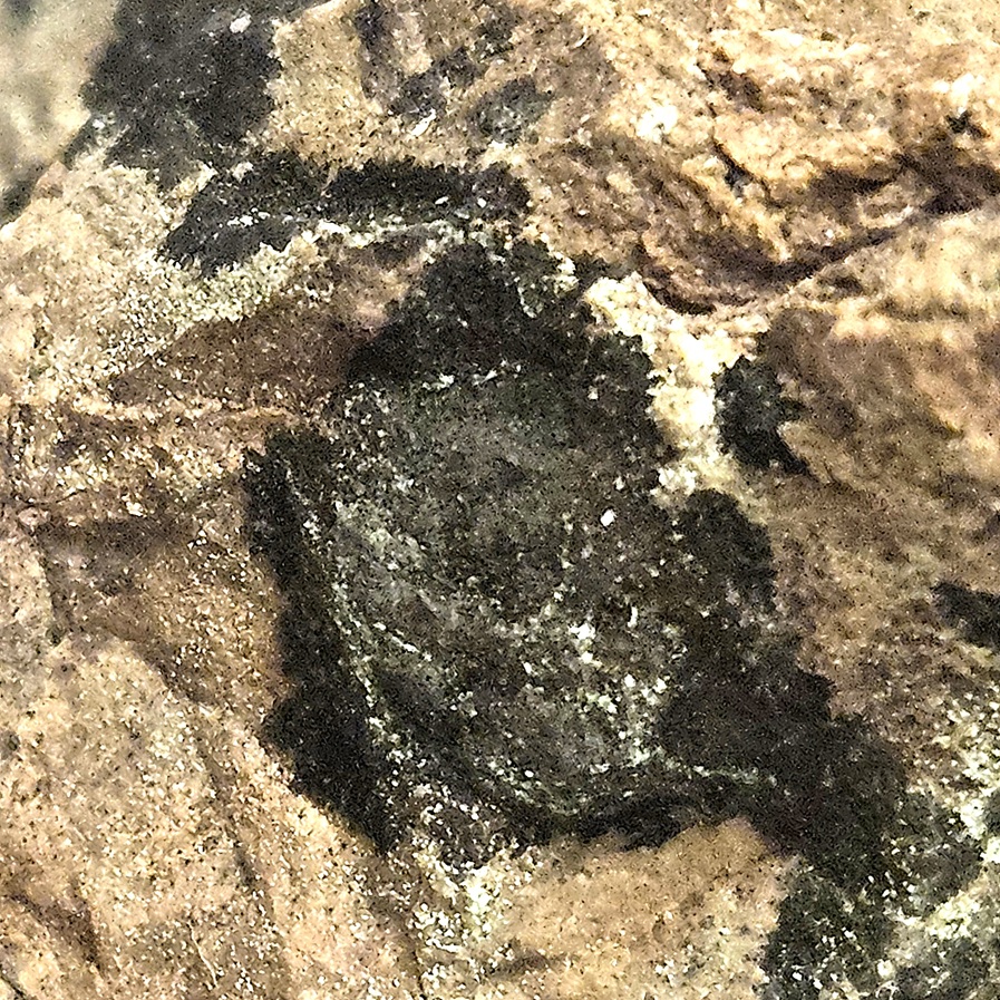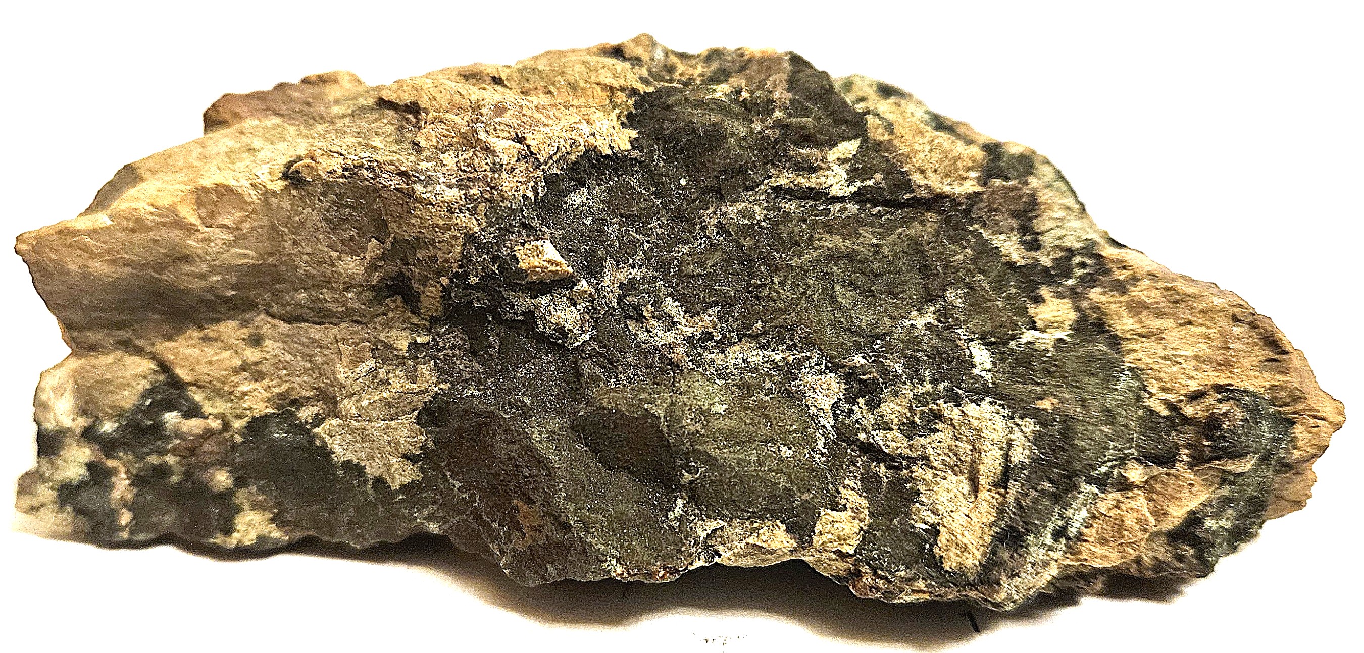 [Dull Dark Blue-Black Massive with Calcite and Pyrite]