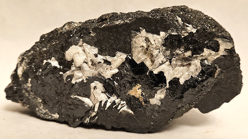 [Lustrous Black Crystals on Massive with Calcite]