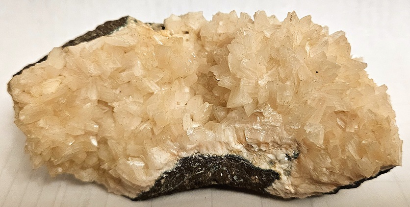 [Glassy White Intergrown Crystals with Stilbite and Quartz on Basalt]