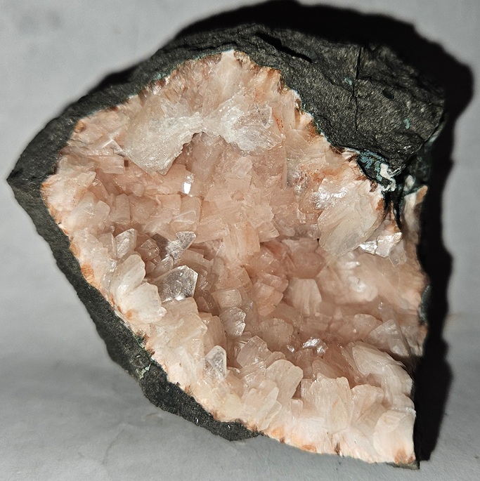 [Glassy Pink Translucent Intergrown Crystals with Quartz on Basalt]