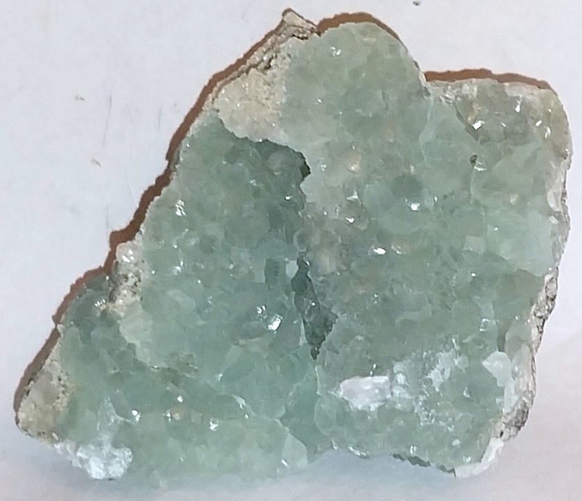 [Pale Green Botryoidal Filling White Analcime-Lined Vugs with Minor Chrysocolla and Chalcocite in Basalt]