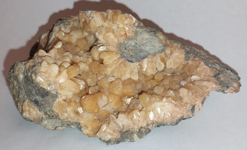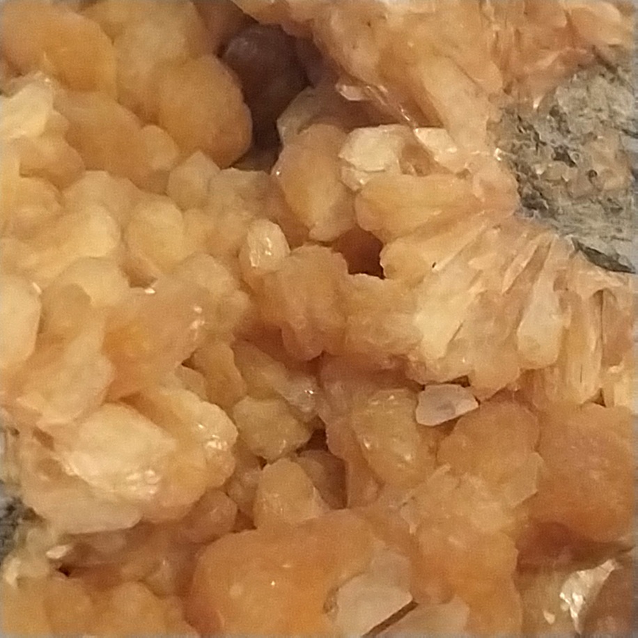 [Intergrown Orange Crystals with Calcite on Basalt]