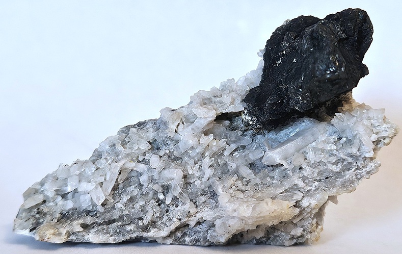 [Dark Grey Crystals with Chalcopyrite and Quartz on Massive]